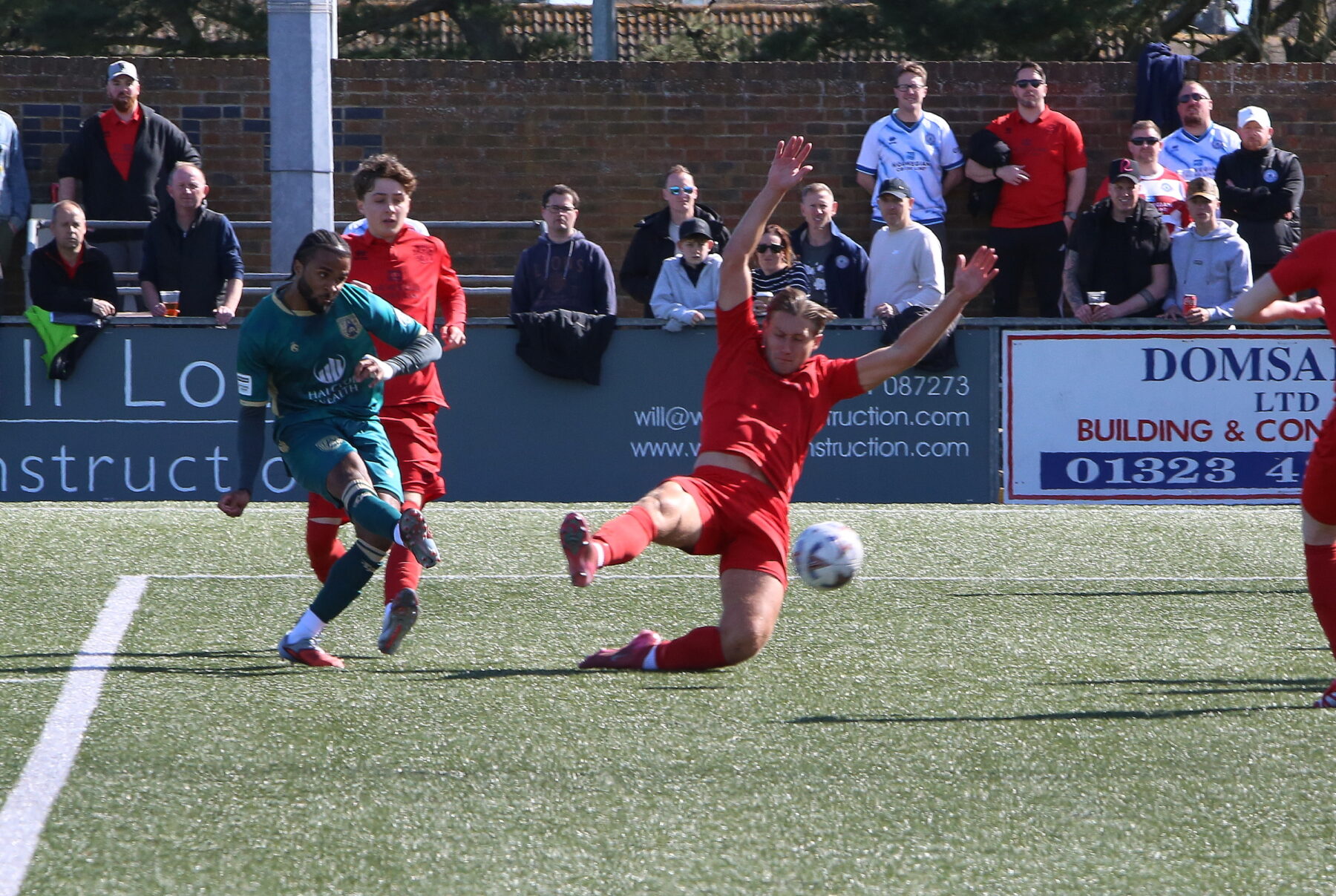 Eastbourne Borough started the game in a very lively manner with Harvey Skieters producing a very good save from Matt Rowley in the opening exchanges. Tonbridge then settled into the game very well, with Kyle Smith going close in the 2nd minute as his shot was blocked before Tom Leahy put the rebound just wide. Tonbridge then opened the scoring in the seventh minute when Ricky Korboa beat the Eastbourne keeper Alex Hobden with a fierce shot from the edge of the penalty area after some intricate link up play.
