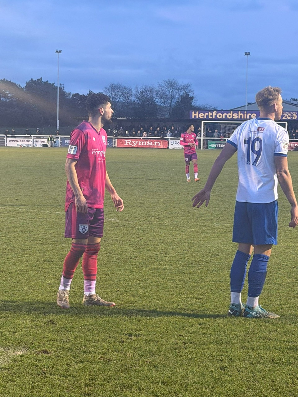 From the opening goal, the visitors controlled the first half and had two great chances to extend their lead when, on 34 minutes, a long ball forward saw Leahy challenged by Enfield’s goalkeeper, Joe Wright a long way from his penalty area with the ball breaking to Ricky Korboa, whose shot was deflected for a corner. On 40 minutes, a superb cross from Leahy found the diving head of Pavey, but his effort was directed at a thankful Wright.