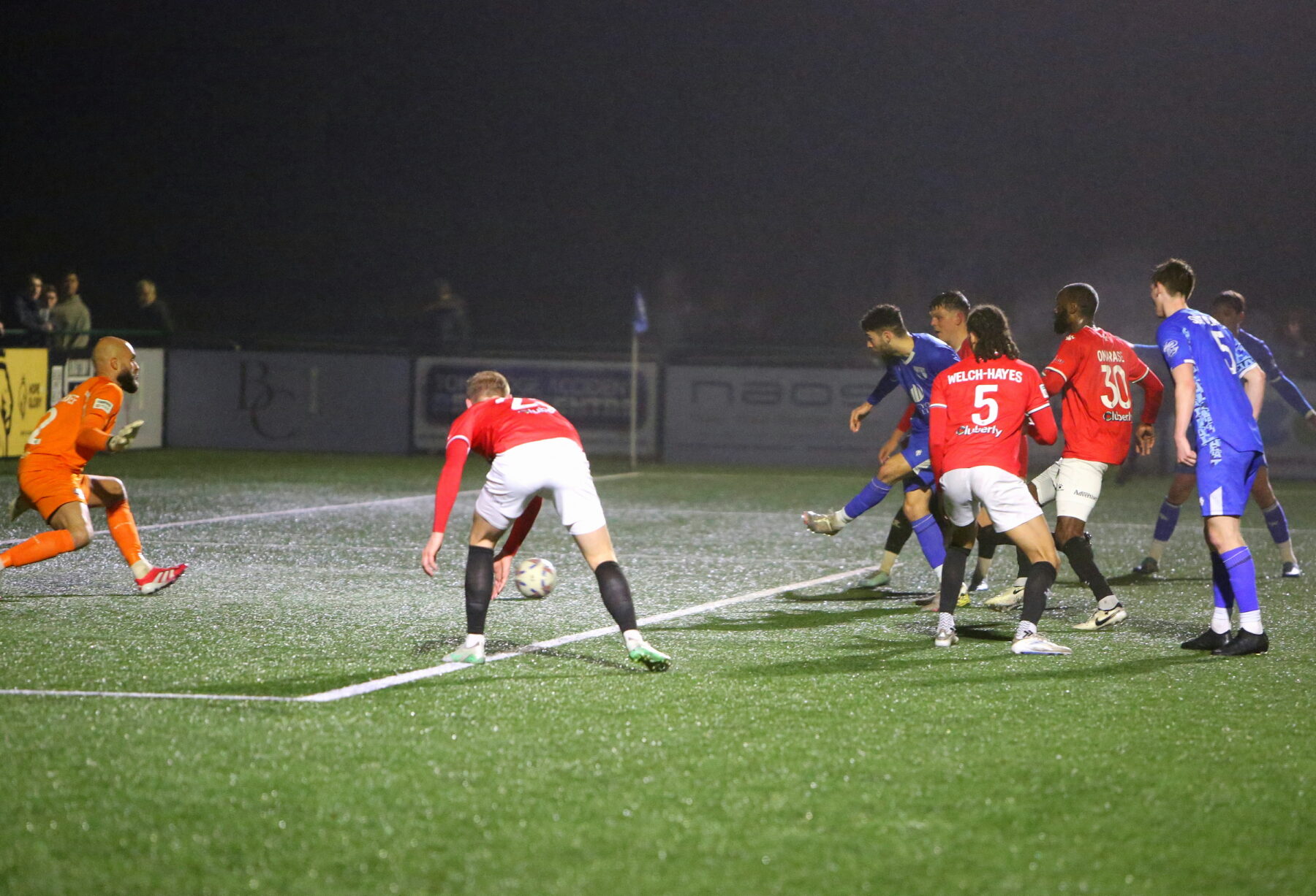 A calamitous Maidenhead mix-up at the back saw the ball fall to Baker who could see the empty goal gaping but a last ditch sliding challenge from Manny Onariase saw his shot deflect on to a post.