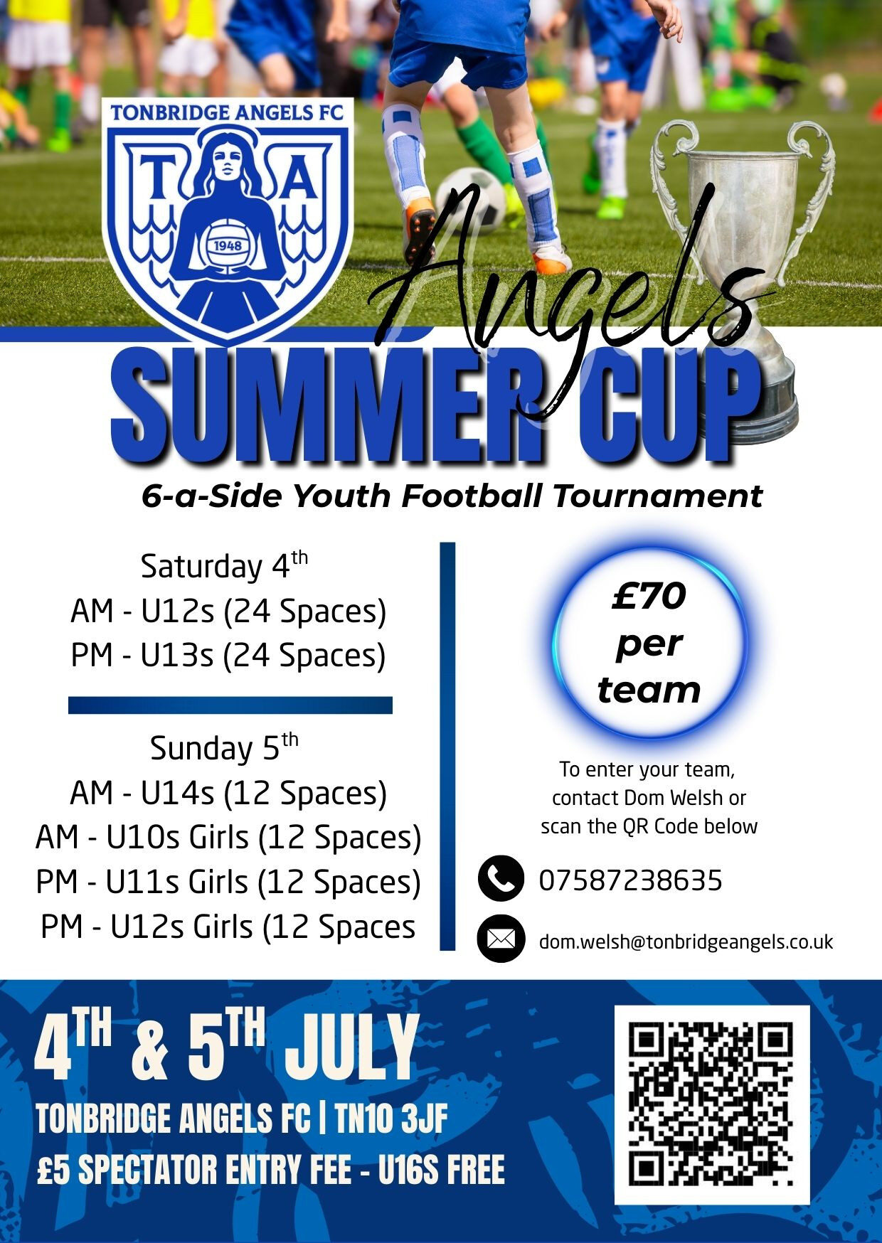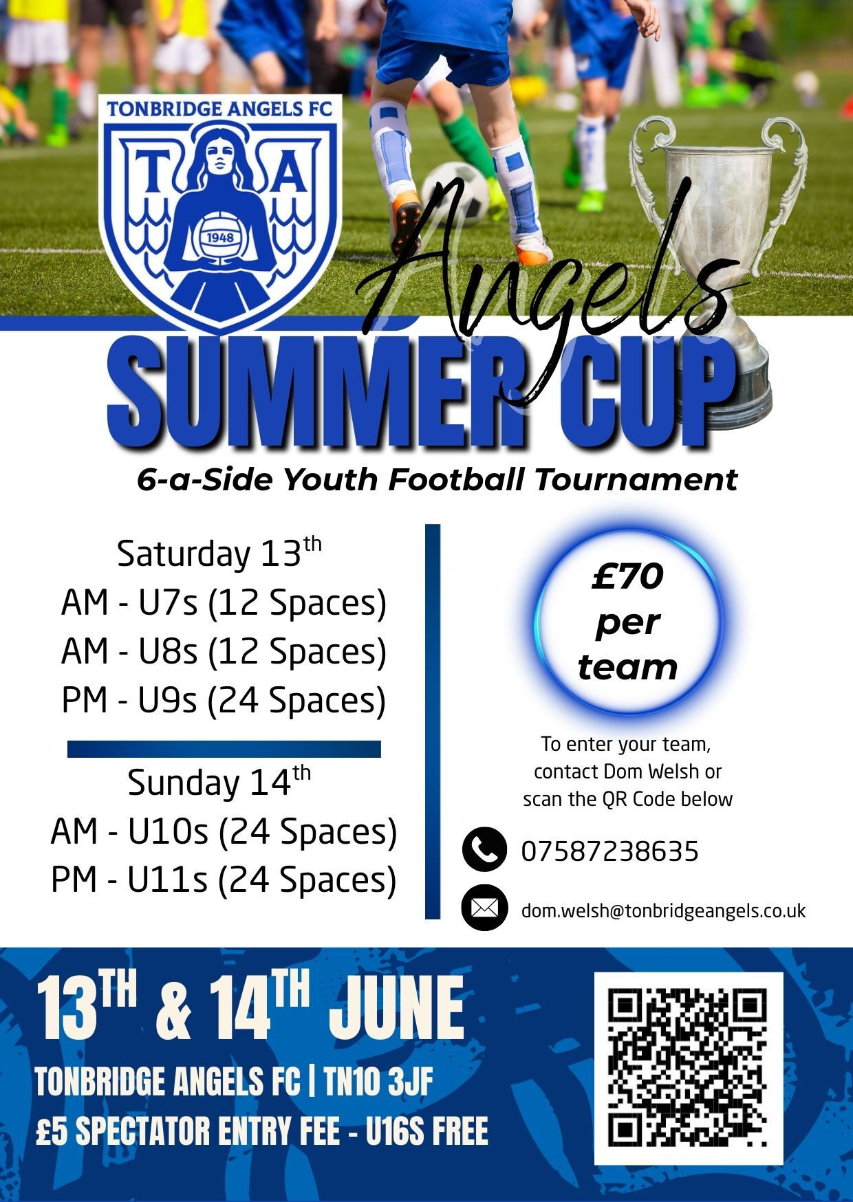 Any queries regarding the tournament can be answered by Dom Welsh at dom.welsh@tonbridgeangels.co.uk