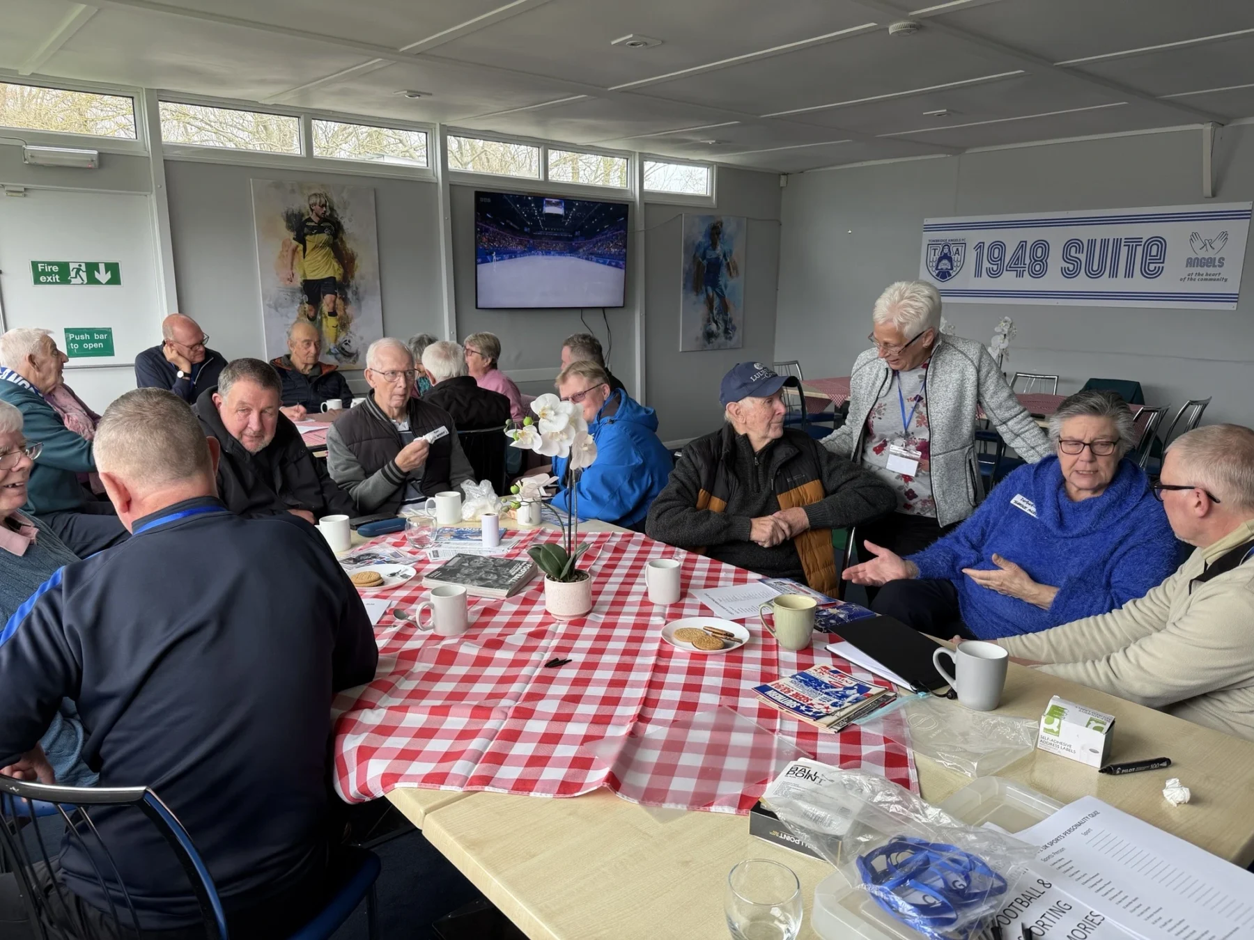 On the 1st and 3rd Mondays of every month, the cafe is run at Tonbridge Angels where everybody talks about sporting memories and take part in a quiz over tea, coffee and biscuits. The cafe is supported by volunteers, many from the walking football community. Good fun was had by all with all attendees leaving with complimentary tickets for an Angels game.